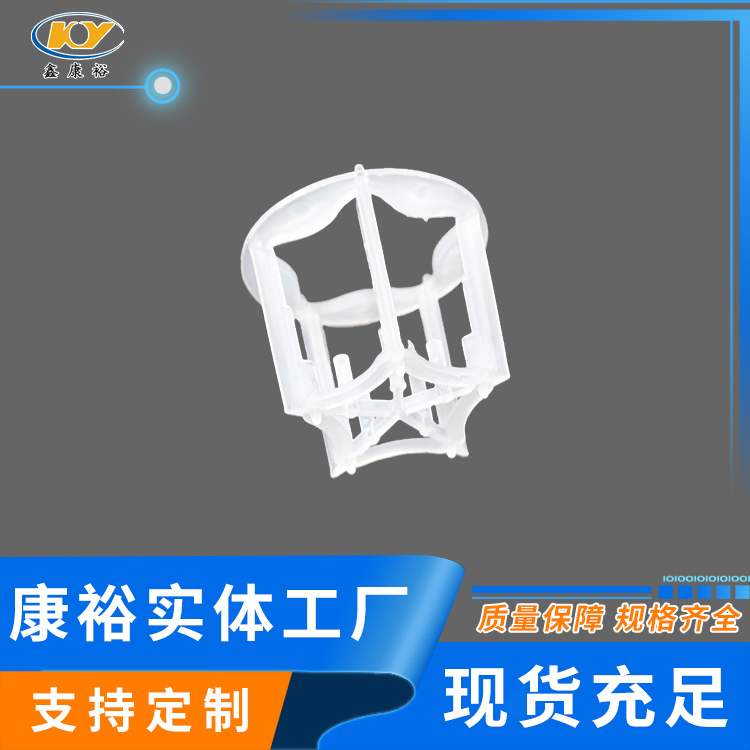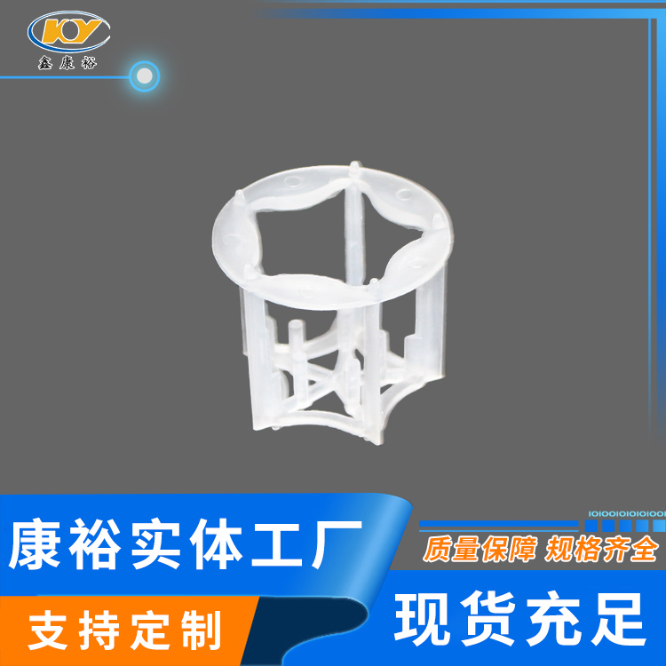 塑料五角环是以聚乙烯(PE)、聚丙烯(PP)、增强聚丙烯(RPP)、聚氯乙烯(PVC)、氯化聚氯乙烯(CPVC)及聚偏氟乙烯(PVDF)等耐化学腐蚀的塑料为材料制成的。广泛用于石油、化工、氯碱、煤气、环保等行业的填料塔中