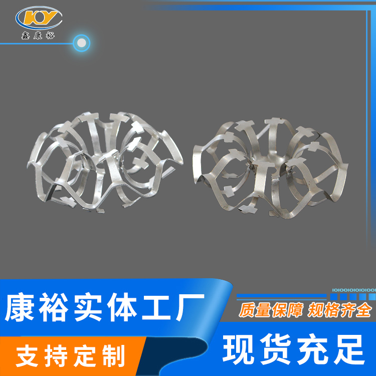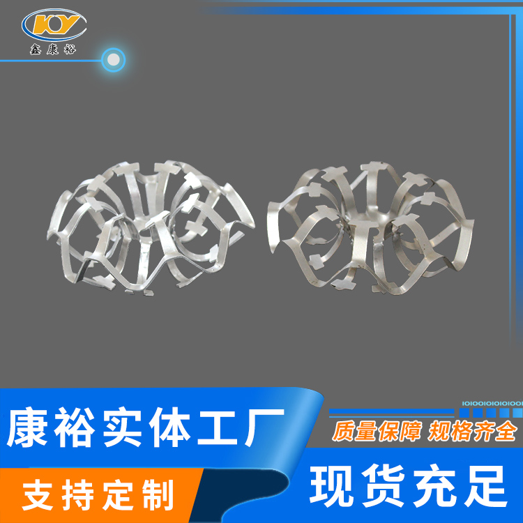DN95铝合金花环填料公司新研发的金属花环填料(铝花环,铝合金、不锈钢花环)材质主要包括碳钢、铝合金及不锈钢等。由于其壁薄,空隙率大,通量大,阻力小,分离效果好,特别适真空精馏塔,处理热敏性,易分解,易聚合,易结碳的物料。如煤气脱水器采用铝花环填料,应用后传质效率好,脱水,机械水含量≤20g/m3,并满足高炉热风炉的要求。